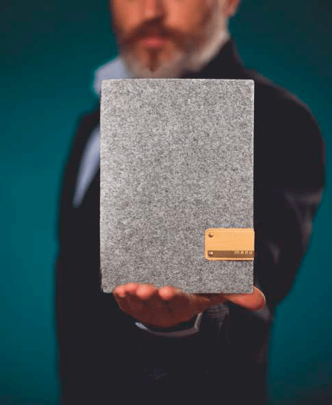 DAG Style ha voluto ispirarsi a modelli storici riscrivendo la storia del portamenu, abbinando un design minimalista a materiali e colori classici. La scritta menu in copertina, discreta ed elegante, diventa elemento di rottura tra la tradizione e l’innovazione, creando fascino e curiosità predisponendo alla lettura della lista delle pietanze.