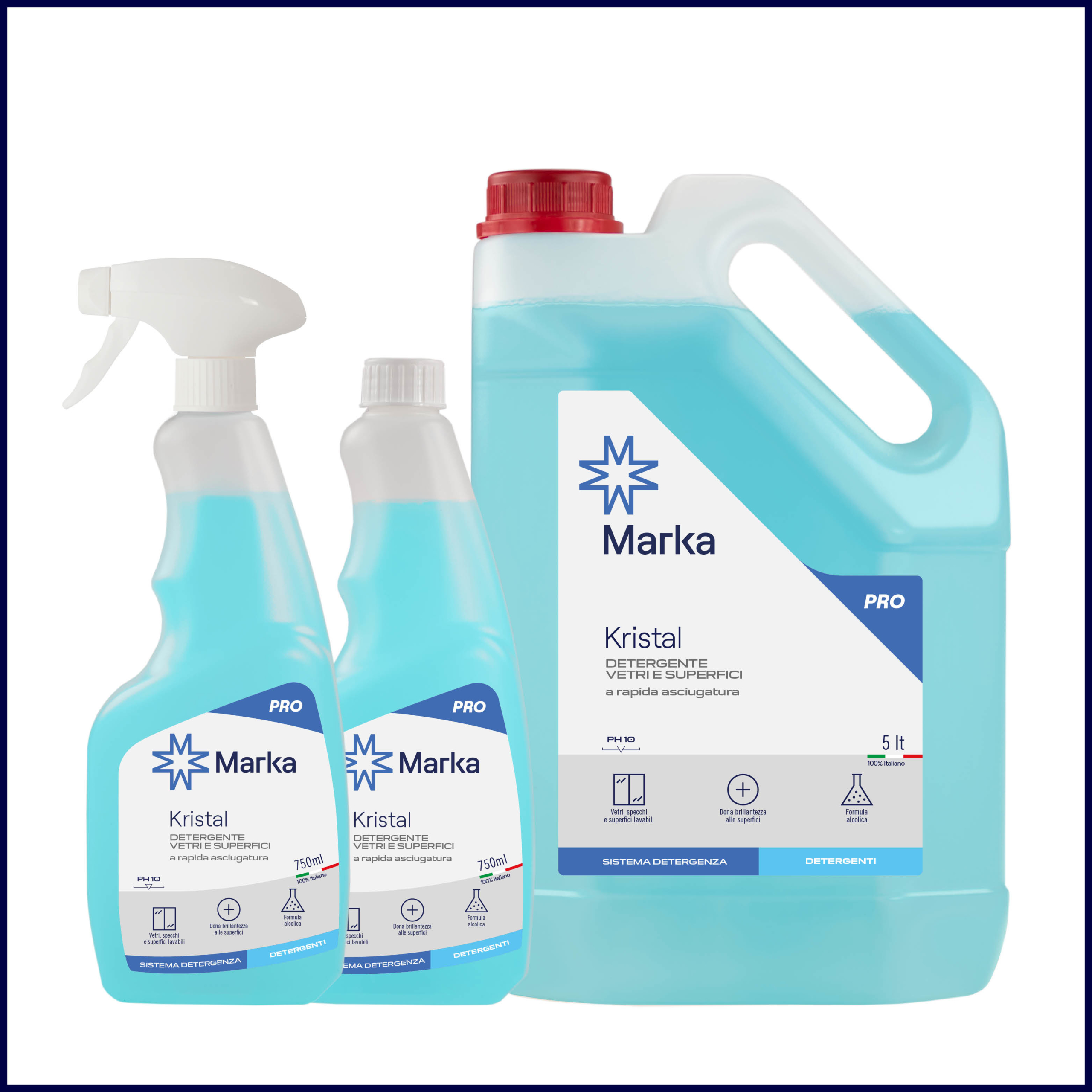 Detergente vetri e superfici a rapida asciugatura. Ottimo anche sugli acciai.