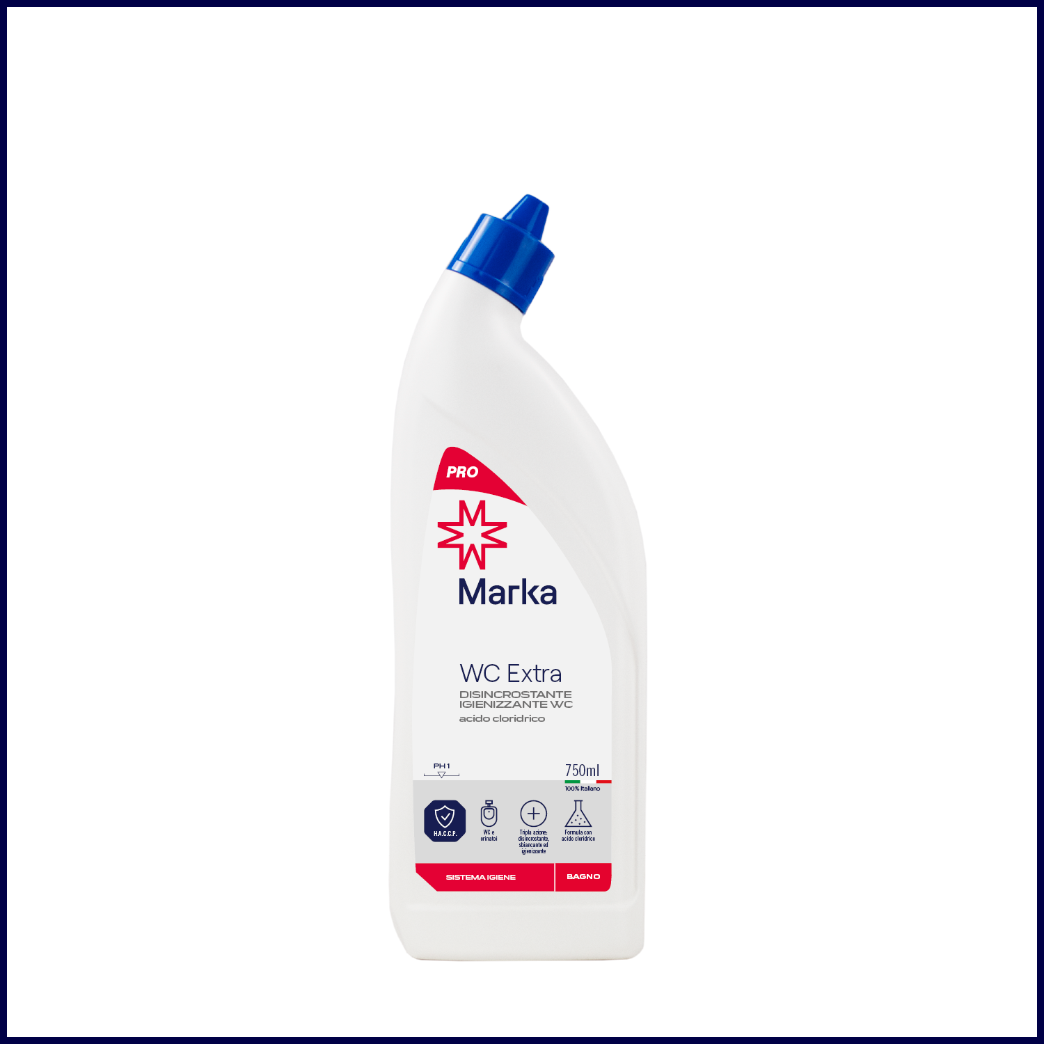 Disincrostante igienizzante WC acido cloridrico. Efficace su incrostazioni di calcare, macchie di ruggine e residui di sporco organico.
