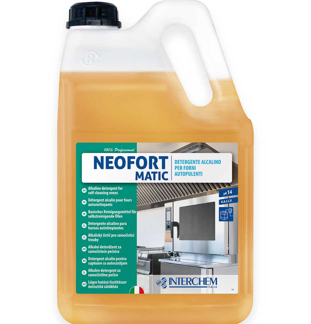 Detergente alcalino per la rimozione rapida di incrostazioni e residui carboniosi da forni auto-pulenti e a convezione. Scioglie ed elimina in pochi secondi oli e grassi sia di origine animale che vegetale, non intaccando metalli e guarnizioni