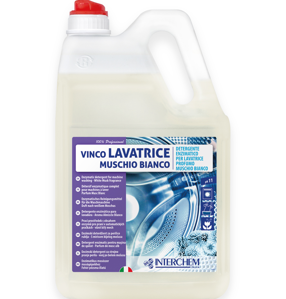 Detergente liquido enzimatico completo, igienizzante e profumato, per macchine lavatrici industriali e non. Attivo su tutti i tessuti e su qualsiasi tipo di sporco. Efficace anche in presenza di sporchi particolarmente difficili e con acque molto dure. Attivo anche su macchie e grassi di origine organica.