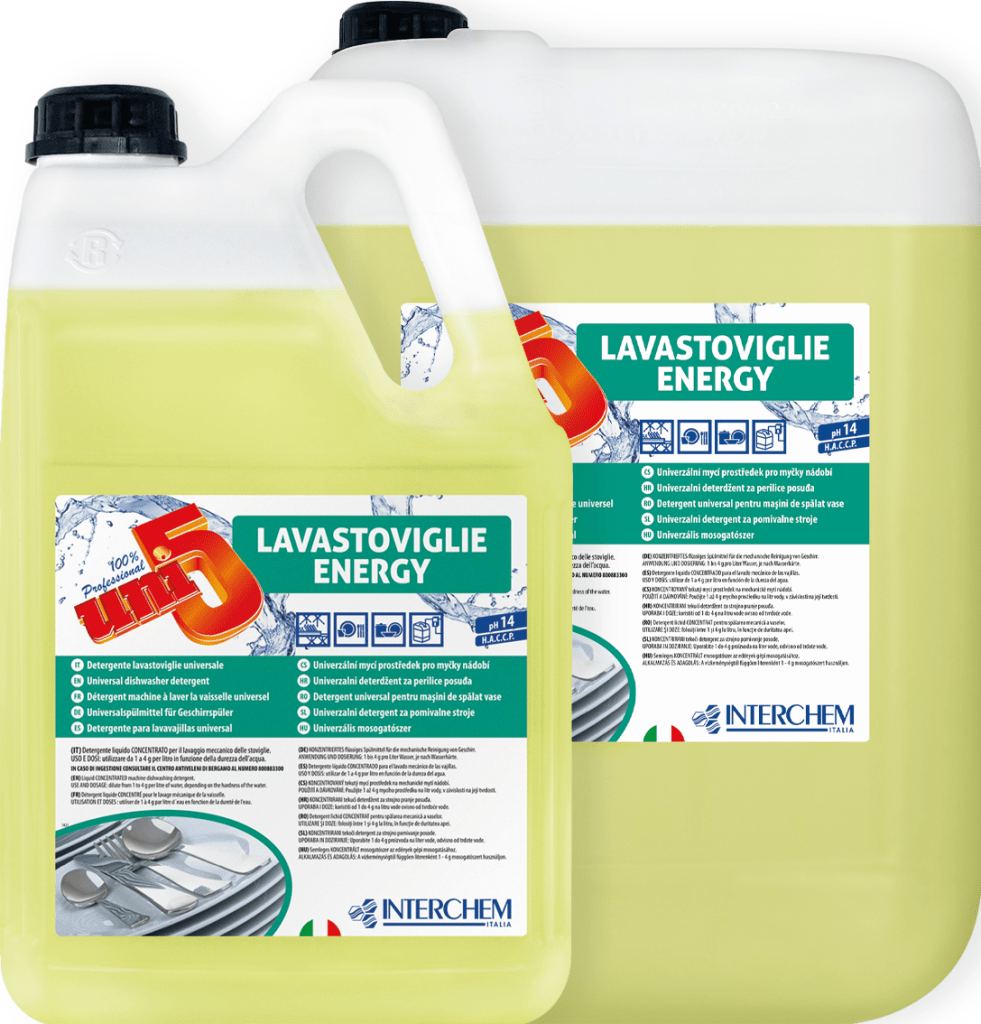 Detergente alcalino liquido concentrato per il lavaggio meccanico delle stoviglie in macchine professionali, ideale per acque medio-dure. Oltre a pulire impeccabilmente le stoviglie e i bicchieri, rilascia un sottile strato protettivo che ne previene l’usura.